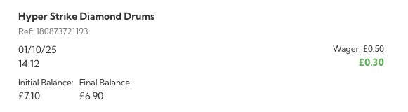 This is obviously gambling so chances are you won’t be a winner. In this case I started with £10 and as you can see from the screenshot of my last spin, after spending £10 I had a balance of £6.90 so I’d lost £3.10.
