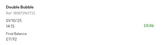 This was still a smart risk as like with the Double Bubble offer, even if I lost the entire £10 I would still be in the green for the offer overall.
