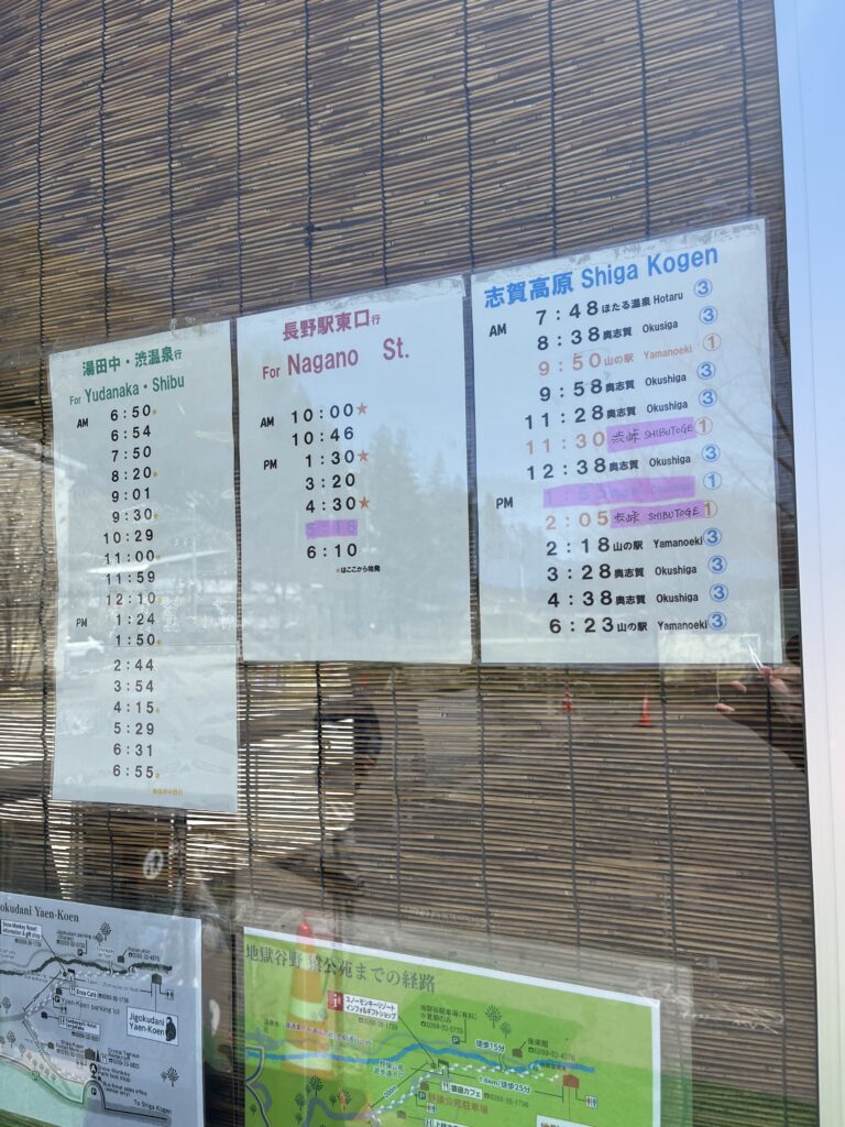 The bus stop is outside the East exit of the station, outside on the ground floor. It takes around 50 minutes from Nagano to the Information centre. Then it is a 40 minute walk to the park.