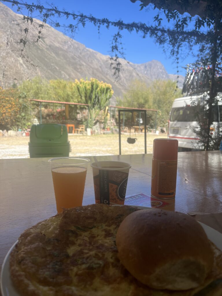 Once you have been collected you meet your group for the next four days and drive around an 1hr until you reach a small rest stop where you have breakfast. This is one of the meals not included in the tour. It cost around PEN25 for an omelet, coffee/tea and juice. Just look at the size of this omelet…