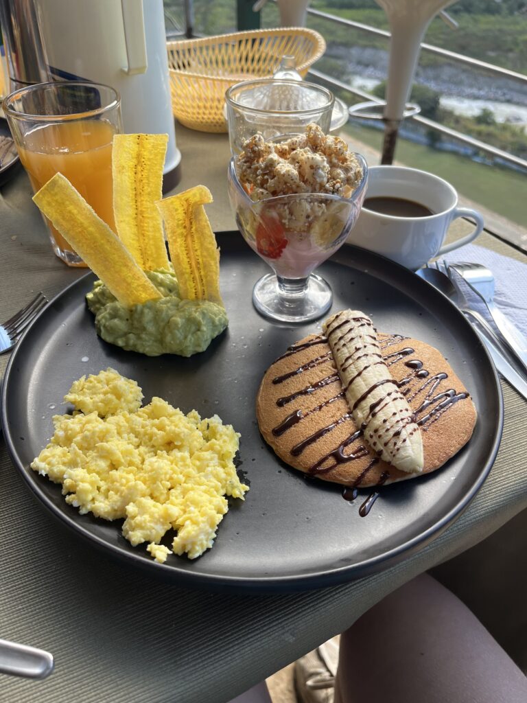 Thanks to my prearranged tickets, my wake up time was a much nicer 7am. We enjoyed a chilled breakfast with one of the nicest views of the trip. Then got picked up just after 8am by a chaperone who would take us to Aguas Calientes.