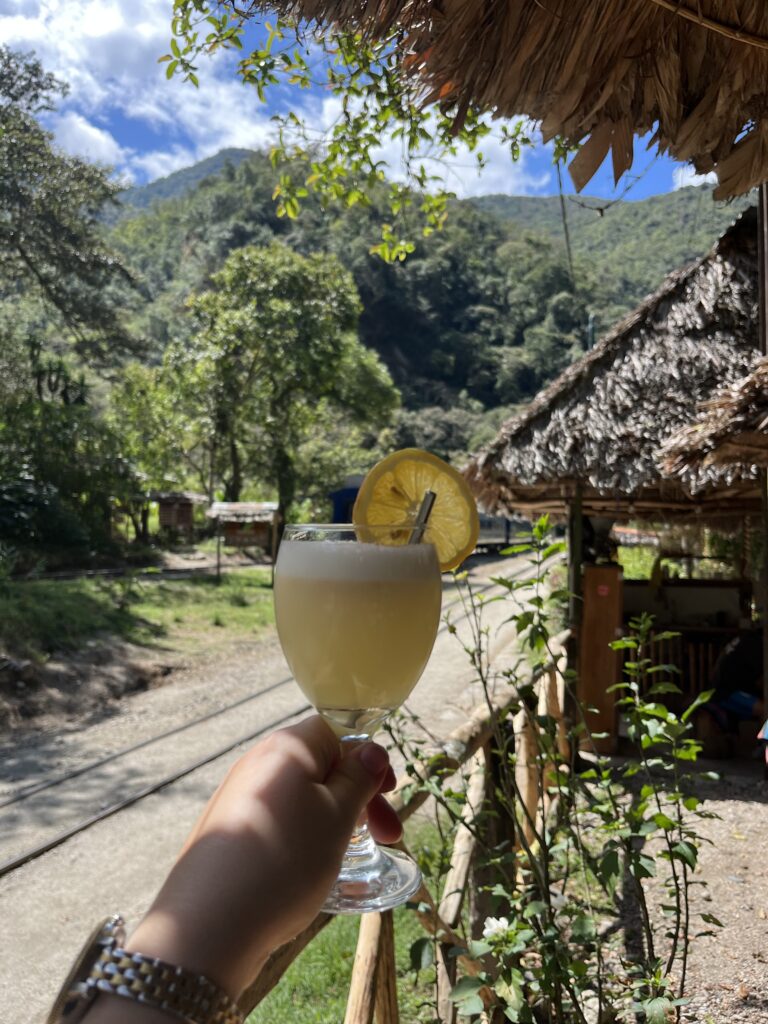 We were driven a short way to the start of the railway line and then walked 13km to Aguas Calientes or as its more commonly known, the town of Machu Picchu. This hike was actually super pleasant as it’s mostly flat. In total it took us 3 1/2 hours to complete and we did stop for a cocktail/cervesa break at just over the halfway mark.